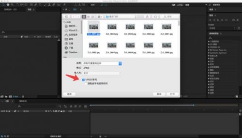 2、将完成调色的图片素材导入 Adobe After Effect 软件(注意勾选 "JEPG 序列"选项)。