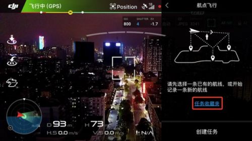 4、设置好拍摄参数以及定时拍摄模式、用航点记录功能进行第二次拍摄,记录天黑后的场景。首先打开航点记录中的任务收藏夹,选择天黑前收藏的航线后点击立即执行。