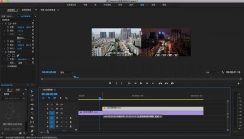 1、在 Adobe Premiere 剪辑软件中找到两段视频日转夜画面衔接点。