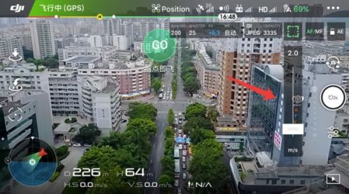 2、以画面中的建筑作为指点飞行的目标,根据实际情况设置好合适的速度,按下快门开始拍摄图片素材在飞行之前应该对飞机整个距离进行判断,并对自己拍摄的素材作出预先规划。(拍摄图片数量 = 飞行距离 / 飞行速度 / 图片拍摄间隔)。