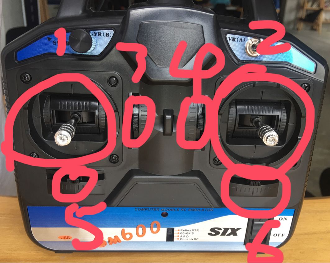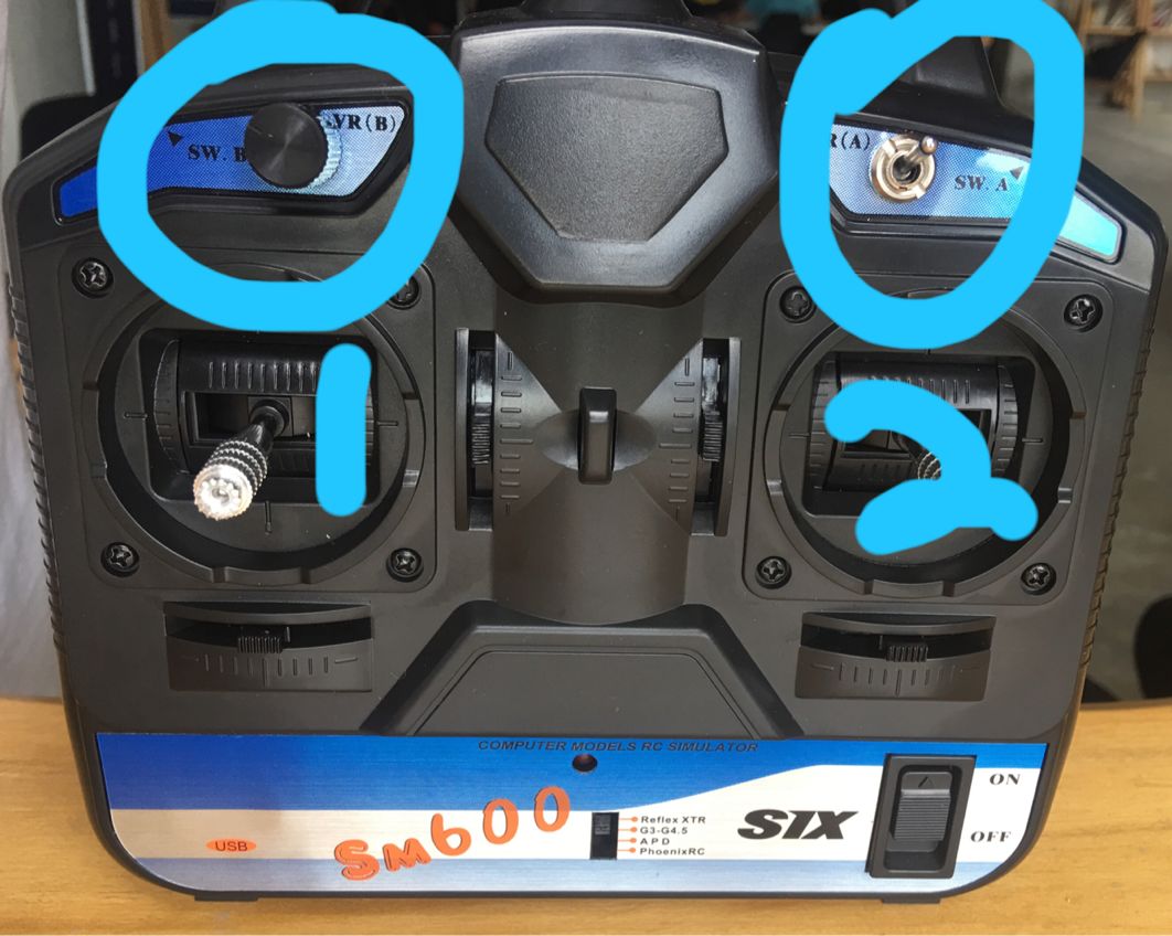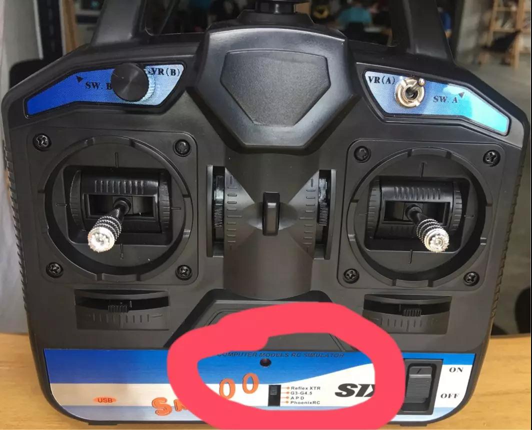 在安装模拟器前,首先按照图1把遥控器红圈内位置拨到PhoenixRC。