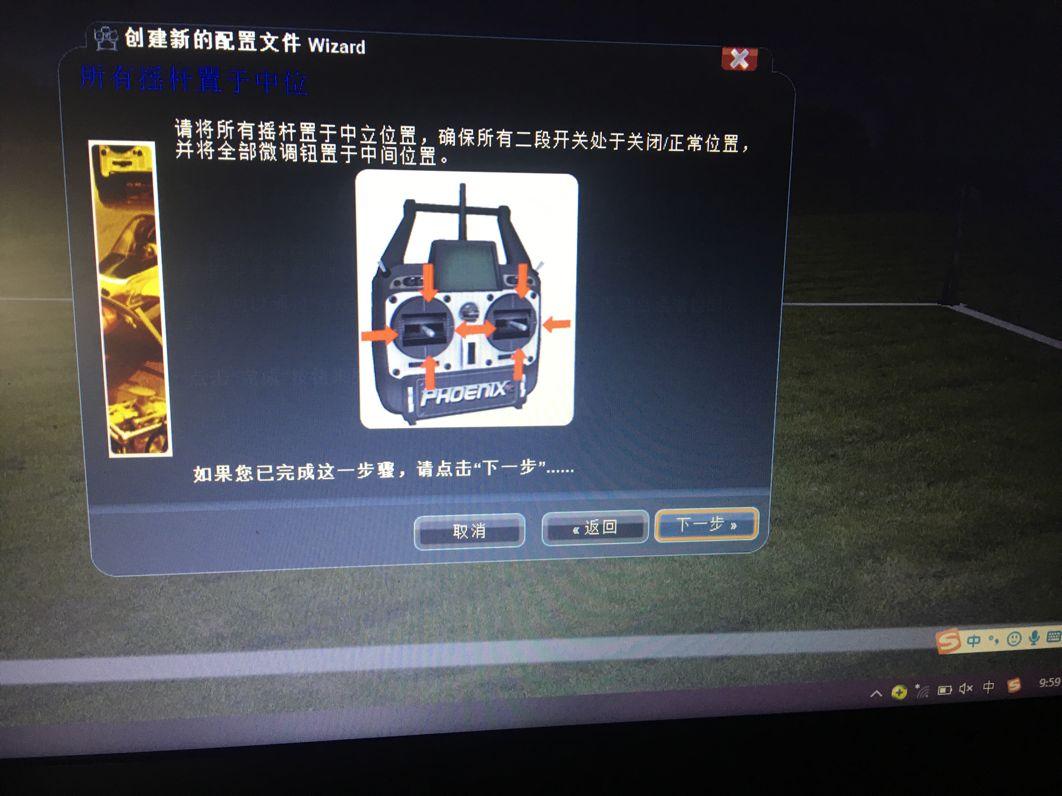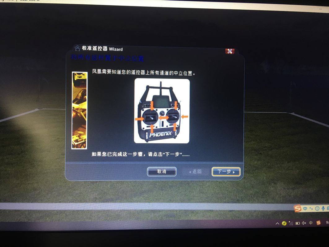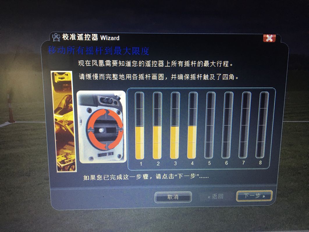 在这个界面依旧检查遥控器是否回中,回中后下一步。