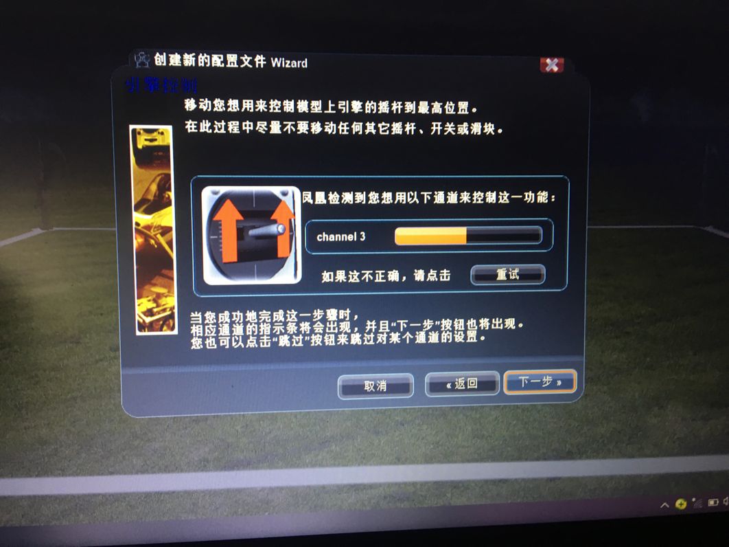引擎就是前面提到的油门,这里图中动画要求摇杆先向上后向下。所以一定要按照这个顺序,不然摇杆反向。