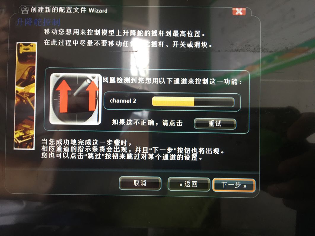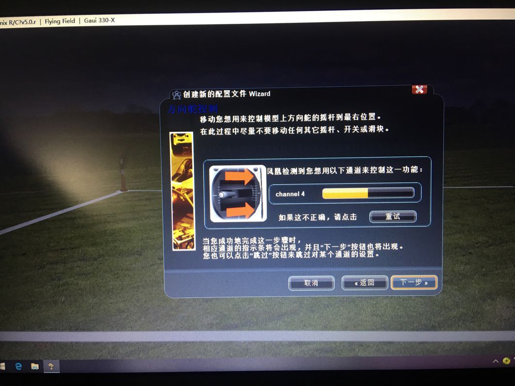 继续下一步,方向舵也如图所示先向右再向左拨摇杆,否则反向,设置后如图19