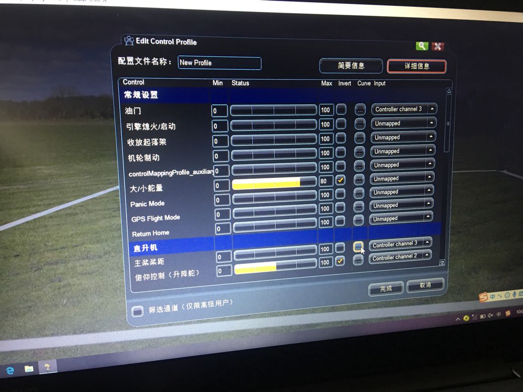 然后点击下一步,这个桨距控制是直升机的,多旋翼用不到,但依旧要设置,和油门共用3通道,设置好以后如图18