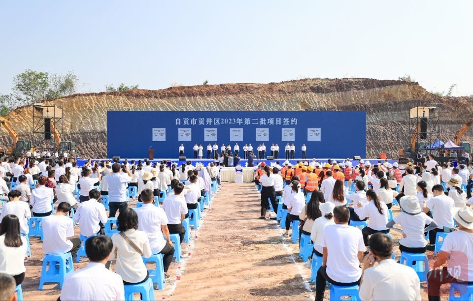 4月19日,自贡市贡井区今年第二批项目签约暨现场推进活动在自贡航空产业园举行,该区现场签约10个项目,开工34个项目,总投资近150亿元,这是自贡今年实施项目投资年行动,以项目为抓手,干在实处,稳定经济增长的务实举措之一。