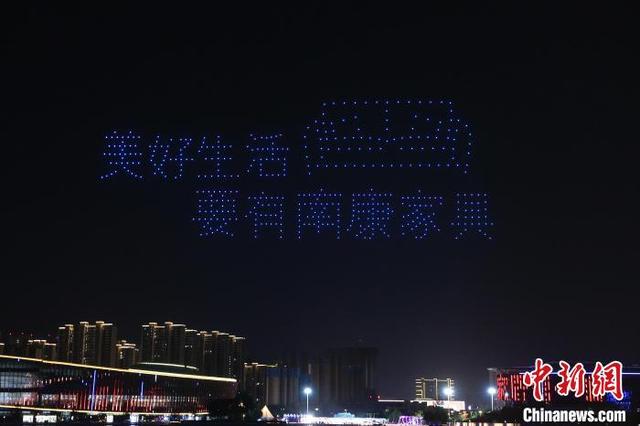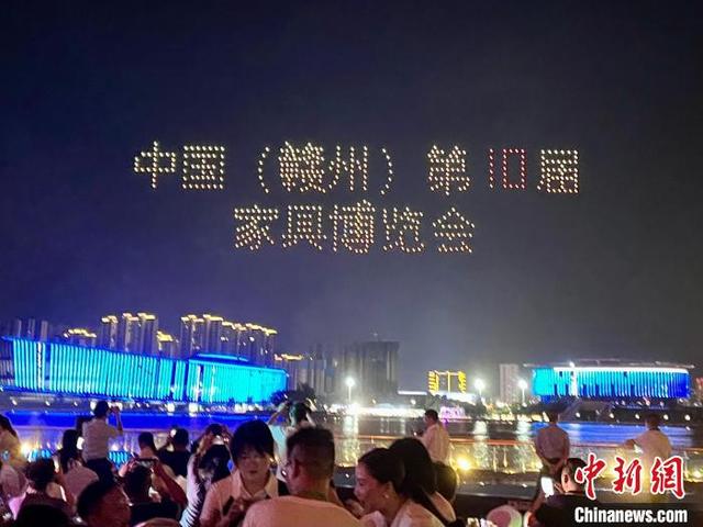 5月27日,中国(赣州)第十届家具产业博览会开幕前夜,一场绚丽的无人机灯光秀表演在本次博览会举办地——江西赣州南康区的南康家居小镇上演。无人机编队先后组成了“中国(赣州)第10届家具博览会”“南康永远是家具人的家”“把南康家具的旗帜插遍全球”等字样图案,吸引了不少市民驻足观看。