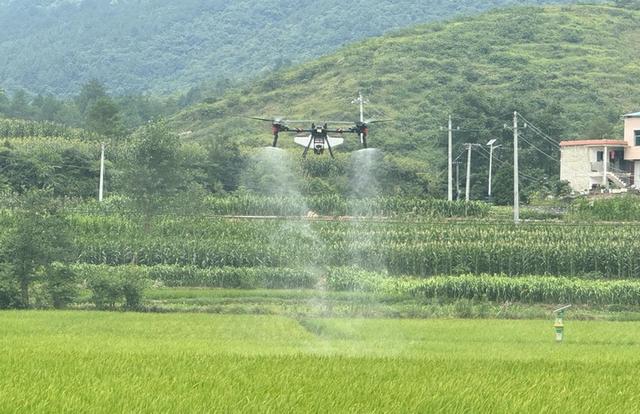 无人机“飞防”除虫害 助力水稻增收。