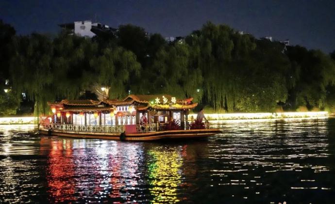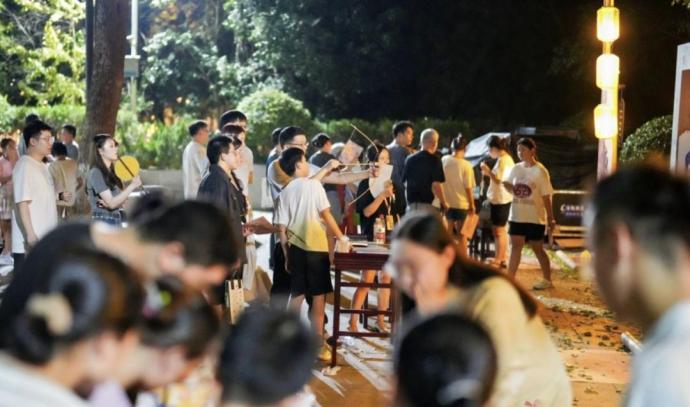 夜幕降临,作为活动主会场的治水广场热闹非凡,各打卡点排起长龙。市民游客们漫步在乞巧雅集的各个摊位,感受舌尖美味、非遗拾趣和文创好物;在“国风运动会”上,大人带着孩子参加投针验巧、锤丸、投壶、射箭等传统游戏,体验最原汁原味的七夕民俗;广场中央的国风舞蹈、情歌对唱吸引了众人驻足欣赏,重现“衣香袂影、霓裳起舞”的市井欢潮;泛舟运河之上,听船夫讲述运河故事,观两岸灯火阑珊,仿佛置身于古人诗词中描绘的“银汉星桥渡,轻舸载梦归”的意境之中。