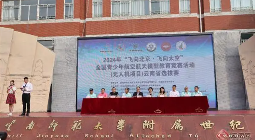为进一步推动我省无人机运动进校园,培育青少年科技素养和创新精神,提升青少年综合素质,9月21日,2024年“飞向北京·飞向太空”全国青少年航空航天模型教育竞赛活动(无人机项目)云南省选拔赛在云南师范大学附属世纪金源学校开幕。
