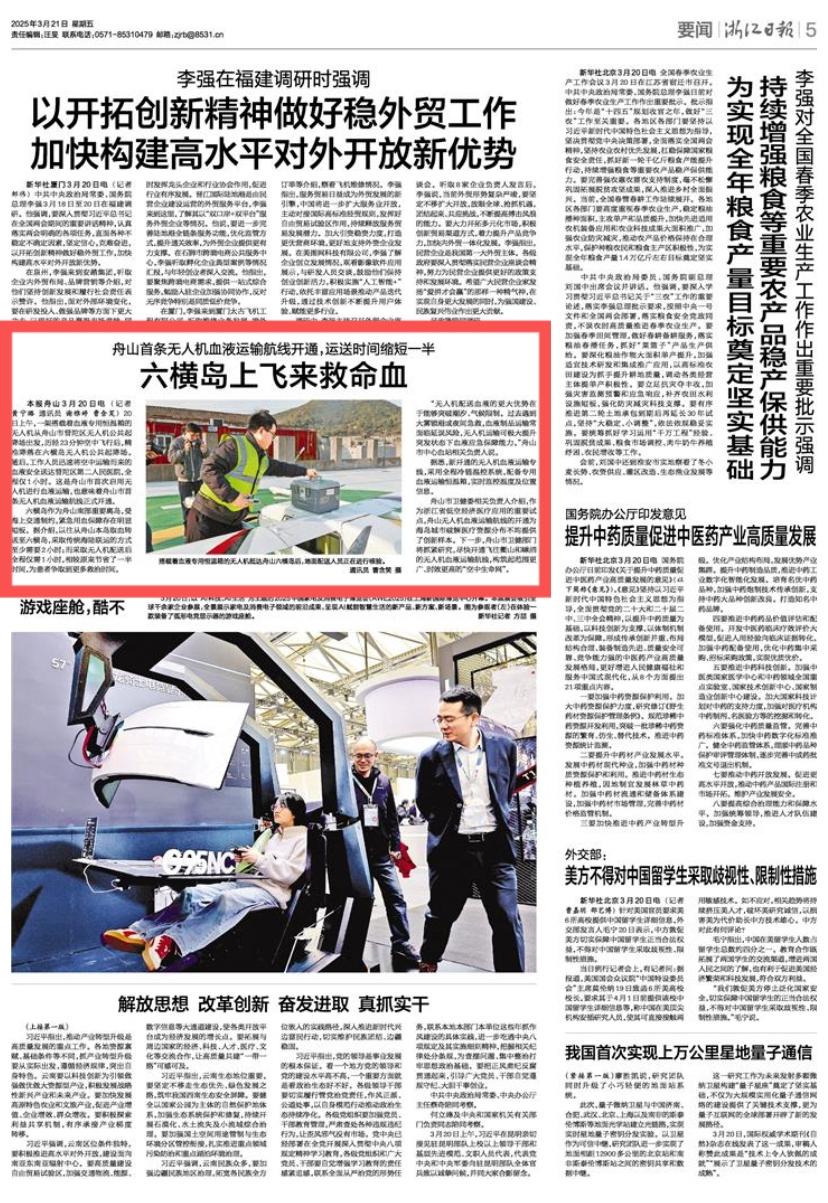 舟山首条无人机血液运输航线开通,架起空中“生命通道”