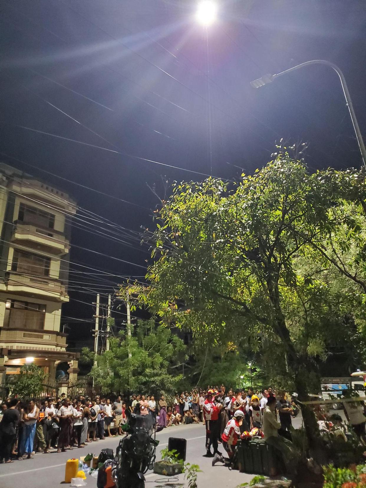 曼德勒市区停电,天暗下来就是一片漆黑,当地用于救援的大多是手电筒和太阳能灯,光线比较微弱。