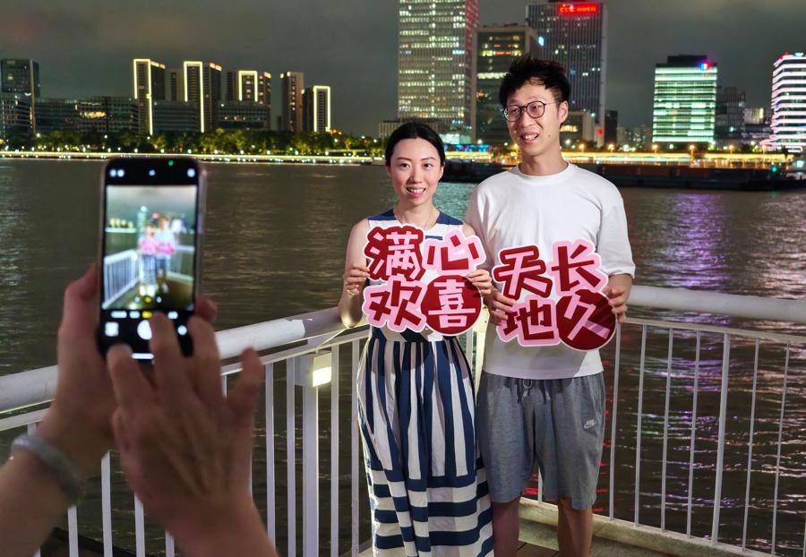 每周六晚!黄浦江畔上演“天空证婚”,无人机送祝福点亮“甜蜜经济”