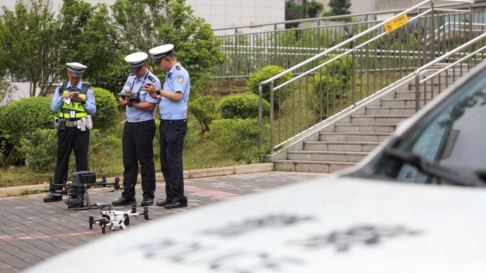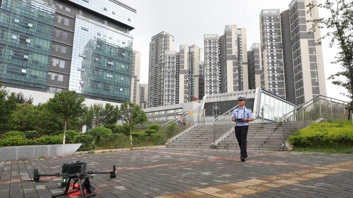“嗡~嗡~嗡~”无人机在道路上空“执勤”