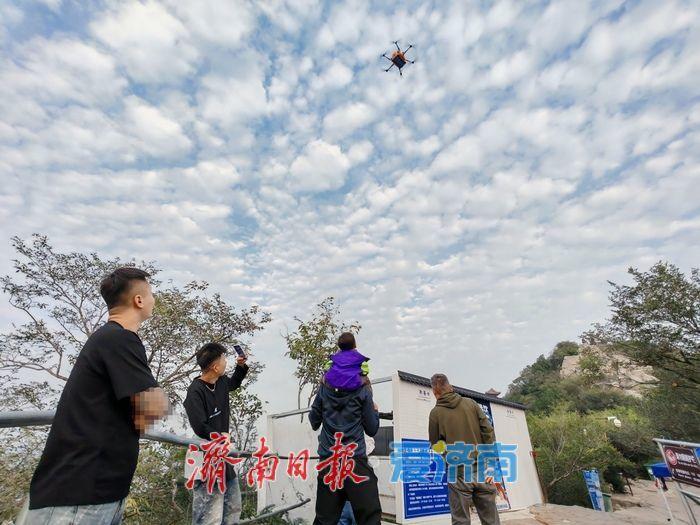 泉城秋日现“空中快递员”,千佛山无人机外卖航线引围观
