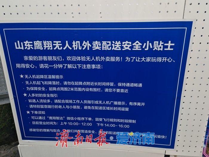 “这是山东省内首条在旅游景区设立的无人机外卖航线。”运营方山东鹰翔航空科技有限公司相关负责人介绍道,这条于国庆期间启用的航线,从泉城广场起飞至千佛山闻翠轩仅需5分钟,飞行直线距离约3公里,高度约290米。无人机最大载重4公斤,单次可运送5份外卖,配送费为10元。