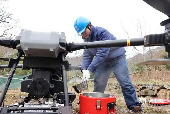 2月1日,在海拔600余米的浙江省杭州市临安区太阳镇鹤岭村,国网杭州供电公司采用无人机热射流带电除冰技术,对±800千伏灵绍线3060号杆塔的绝缘子开展除冰作业。此次成功应用是浙江省内首次将无人机热射流技术用于特高压线路除冰。