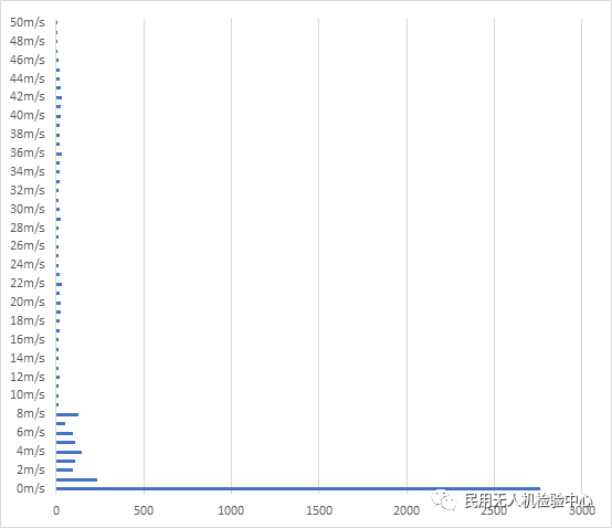 以此类推,50m/s,表示云平台所接收的实时数据中,49米/秒速度≤50米/秒的飞行小时。