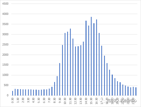 2018年第一季度无人机运行的上午的峰值出现在在北京时间10点30分到11点,下午的峰值出现在15点到15点30分这个时间段。