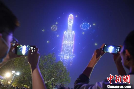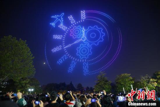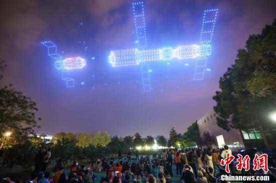 南京航空航天大学2022架无人机上演航天光影秀“问天逐梦”