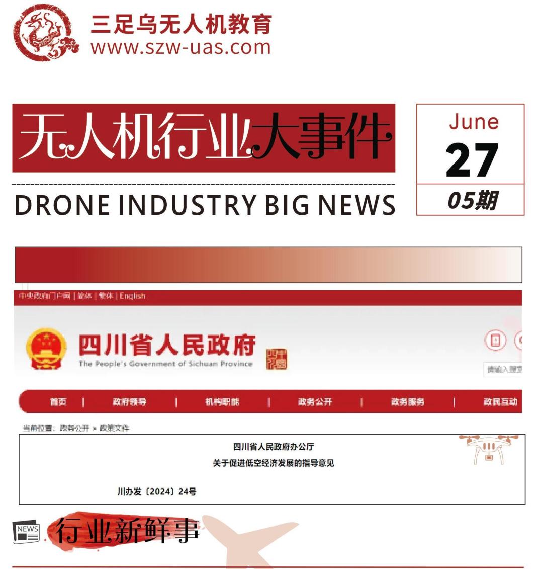‣ 四川省政府公布了《四川省人民政府办公厅关于促进低空经济发展的指导意见》6月4日实施