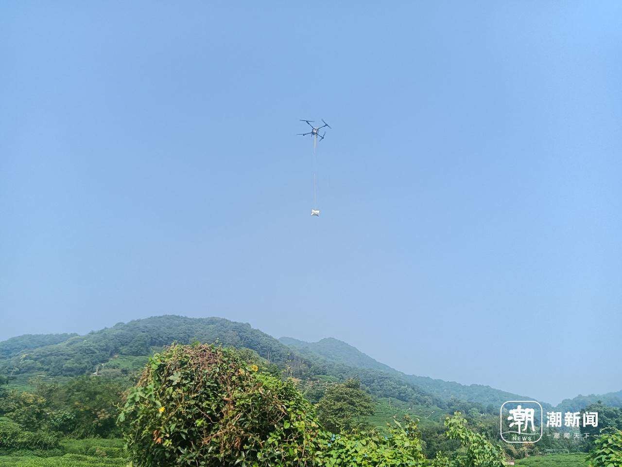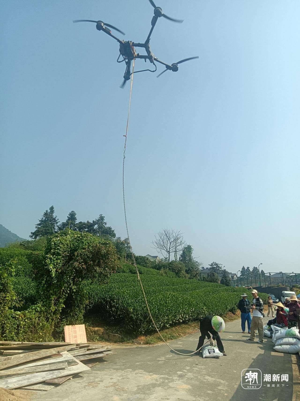 一天七千斤,档期排到10月下旬!杭州村民巧用无人机搬运西湖龙井肥料