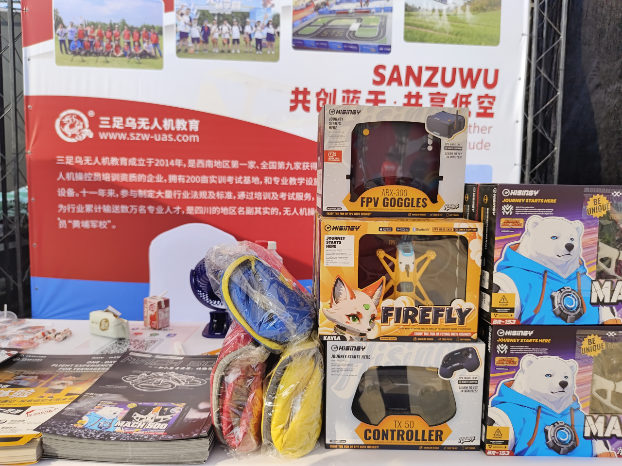 活动现场,三足乌携手国内知名潮流无人机品牌星奇世界,推出MACH 500等穿越机产品,并开启现场售卖。产品一经亮相便吸引了众多小朋友的目光。现场咨询、体验者络绎不绝,成为展会期间科技消费的一大亮点,充分展现了品牌合作的市场潜力与消费者对高品质无人机产品的认可。