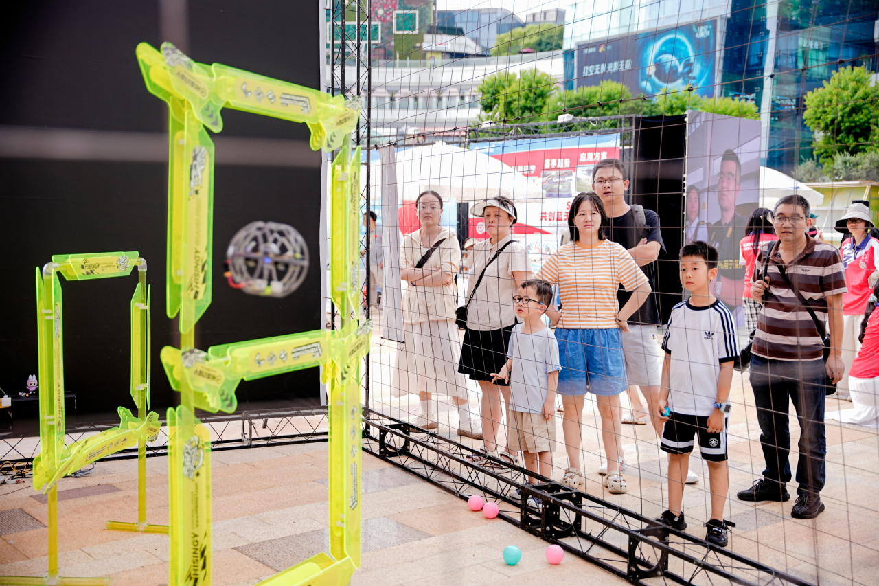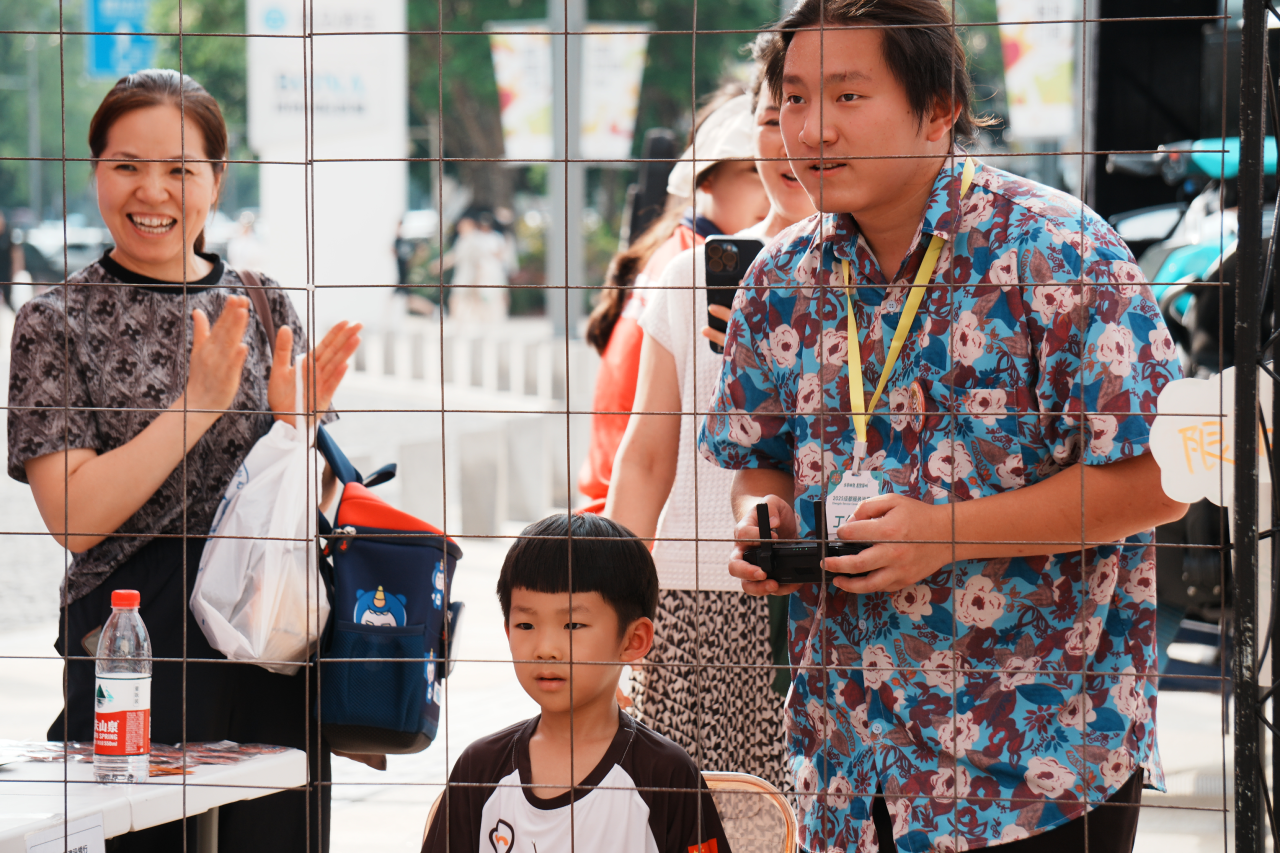 无人机足球向现场小朋友展示了原来“玩具”还可以这样玩!小巧的它在参与者操控下有惊无险的穿过障碍物完成飞行,逼真的沉浸式体验让众多青少年和科技迷大呼过瘾,也点燃了他们对无人机飞行的浓厚兴趣。