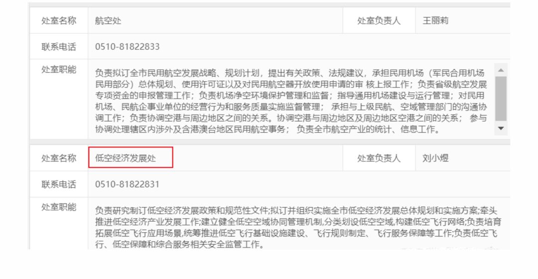 不久前出台了《无锡市低空经济发展促进条例》的江苏省无锡市,在市交通运输局设立“低空经济发展处”,负责研究制订低空经济发展政策和规范性文件;拟订并组织实施全市低空经济发展总体规划和实施方案;牵头推进低空经济产业发展工作;建立健全低空空域协同管理机制,分类划设低空空域,构建低空飞行网络;负责培育拓展低空飞行应用场景,统筹推进低空飞行基础设施建设、飞行规则制定、飞行服务保障等工作;负责低空飞行、低空保障和综合服务相关安全监管工作。