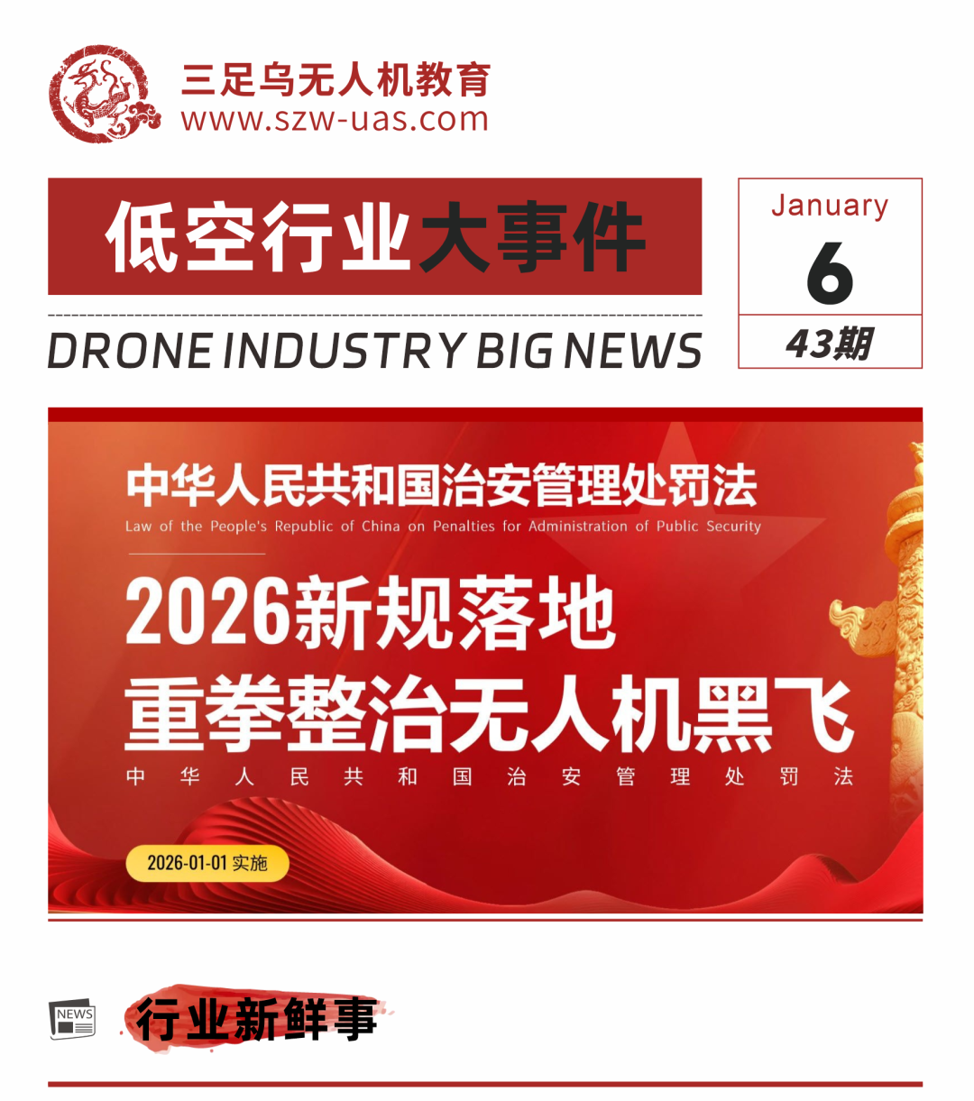 低空行业大事件丨2026 年 1 月 1 日起 新修订《治安管理处罚法》实施 “黑飞” 明确为妨害公共安全行为并设处罚