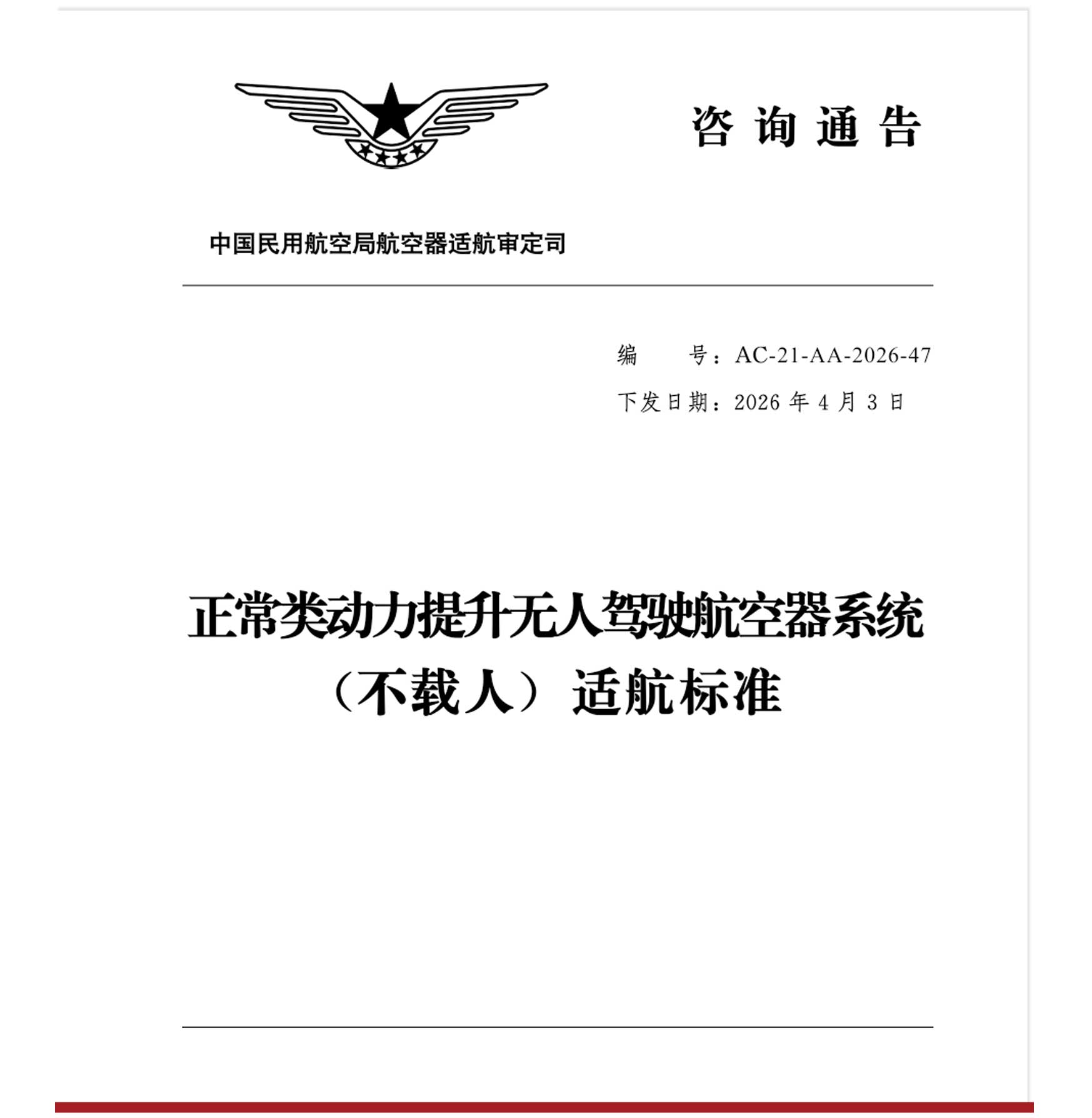 二、《正常类动力提升无人驾驶航空器系统(不载人)适航标准》(编号:AC-21-AA-2026-47)