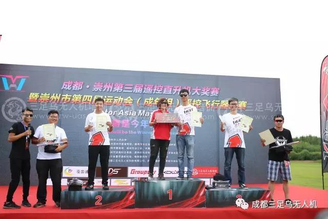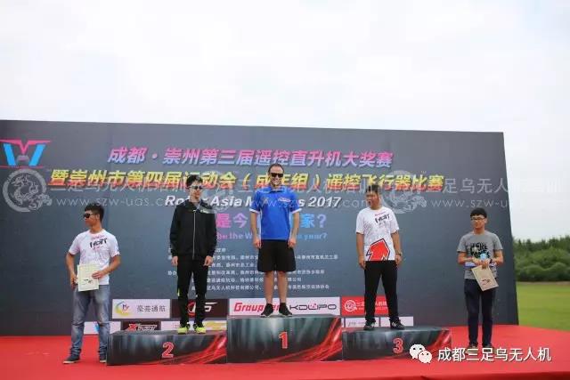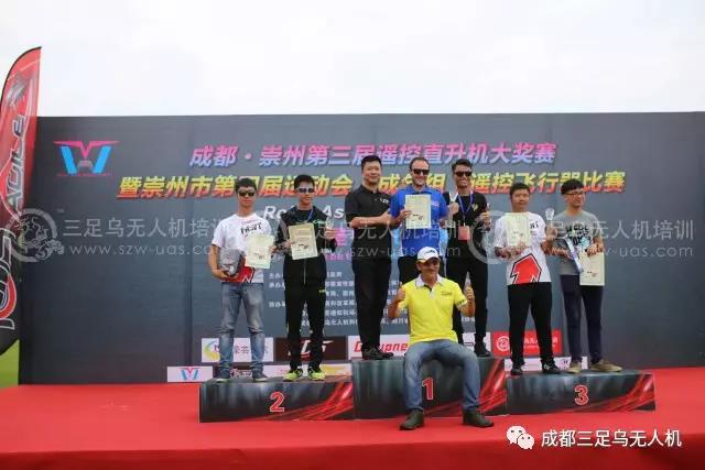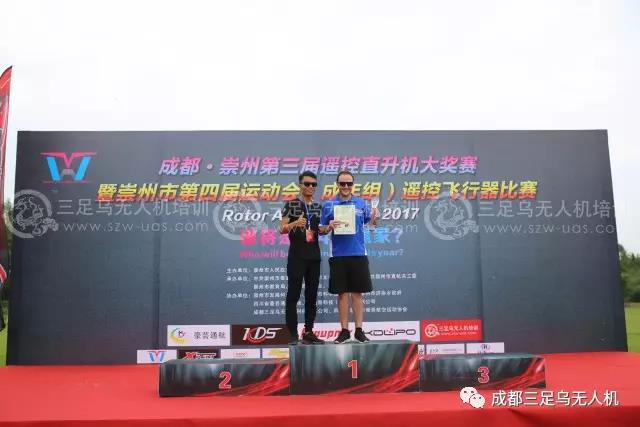 2017年成都•崇州第三届遥控直升机大奖赛暨崇州市第四届运动会(成年组)遥控飞行器比赛于2017 年8月28日,在四川崇州-豪芸通航机场圆满落幕。经过两天的激烈角逐,中级组和专业组的获奖者名单已经揭晓。中级组获奖名单:第一名,来自贵阳的邹云嘉;第二名:来自都江堰航空运动协会的刘俊源;第三名:来自成都的何强;第四名:来自崇州济协乡的何林;第五名:来自成都的濯春佳。专业组获奖名单,第一名:来自德国的Alex;第二名:来自泰国的Sasikana;第三名:来自成都的陈鹏元(三足乌教练)。