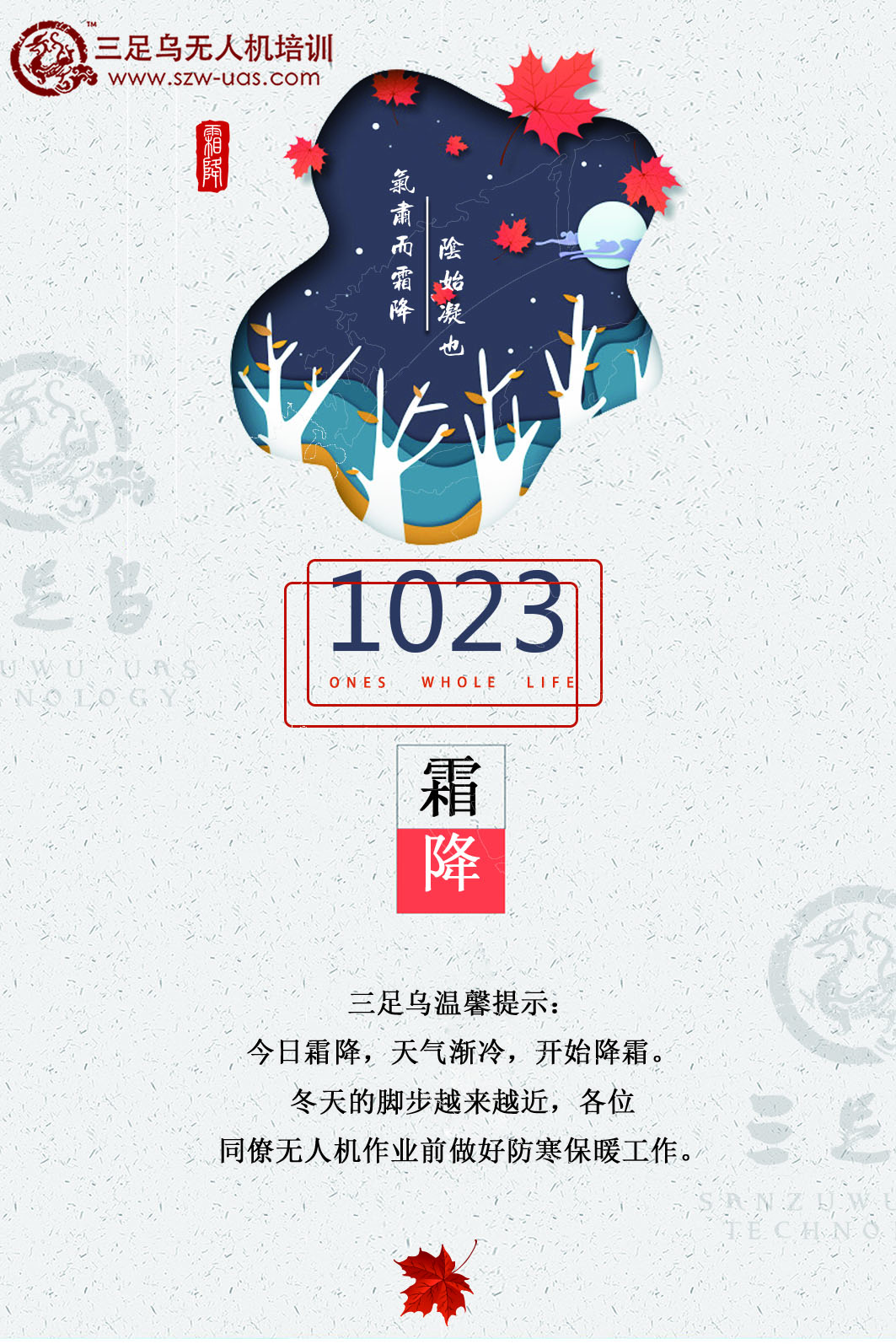 【三足乌温馨提示】今日霜降,天气渐凉。