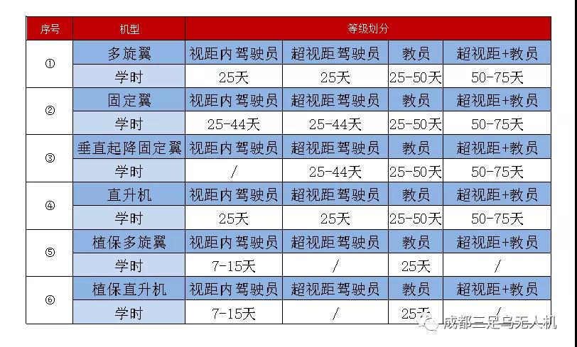 根据机型和等级的不同,对应的培训时长为25天-75天不等。