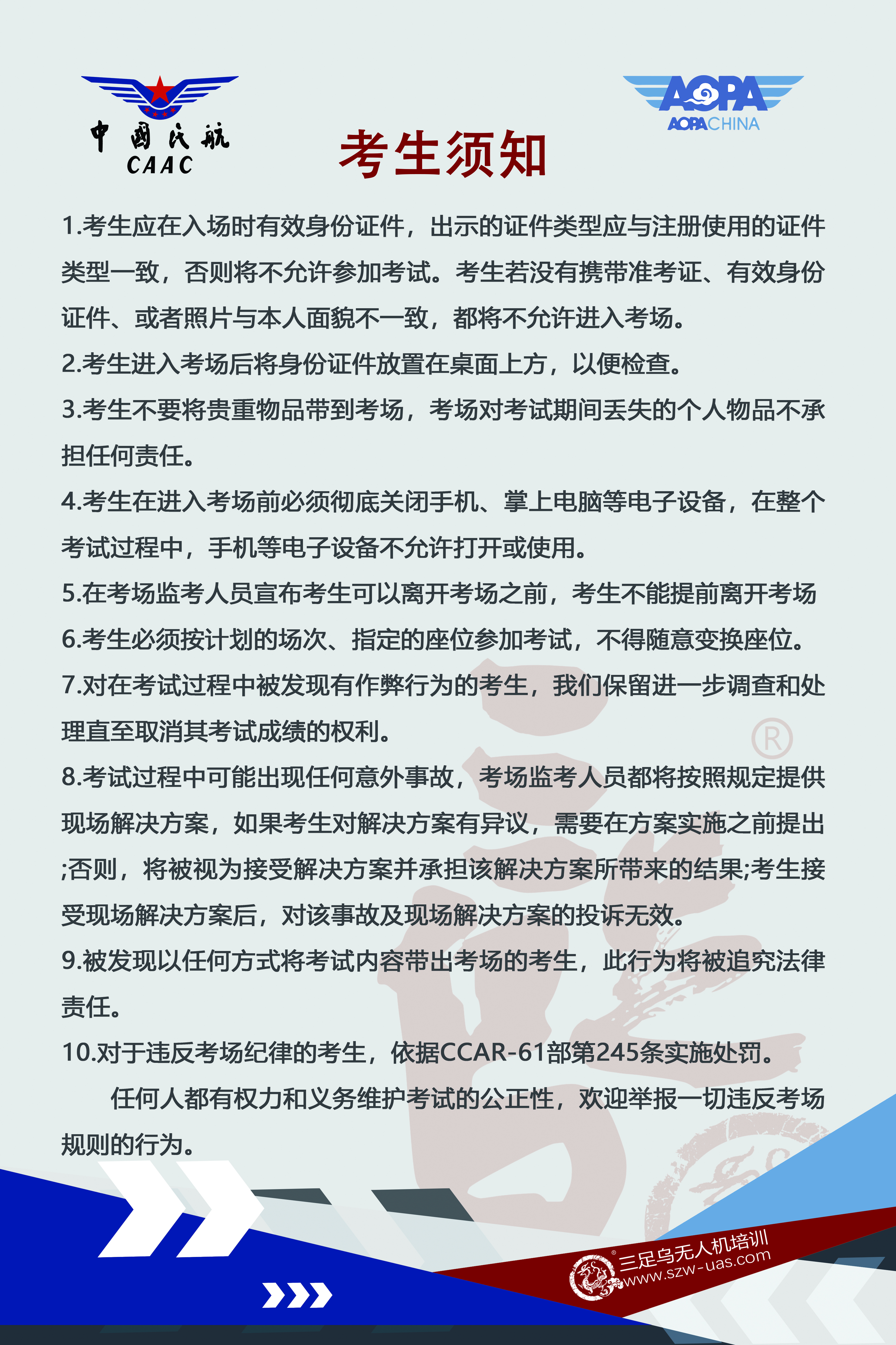 民用无人机驾驶员四川考试点考生须知